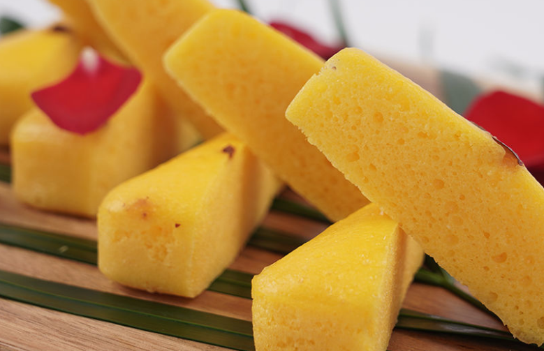 第九步:取出后切成小塊即可食用了,金黃色的軟蛋糕,香氣迎面撲來(lái)啊~